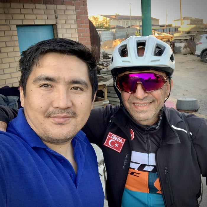 İçecek alıp çıktığımda ise Karayel’i inceleyen, sağını solunu kurcalayan orta yaşlı iki adam ile karşılaşıyorum. “Selam Aleyküm” deyince selamımı karşılayıp Kazakça konuşmaya başlıyorlar. Türkiye’deyken araştırdığım kadarıyla iyi kötü Kazakça’yı anlarım sanıyordum. Ama hiç de düşündüğüm gibi olmuyor. Bir süre umutsuzca birbirimiz anlamaya çalıştıktan sonra doğal bir içgüdü ile vücut diline geçiyoruz.
