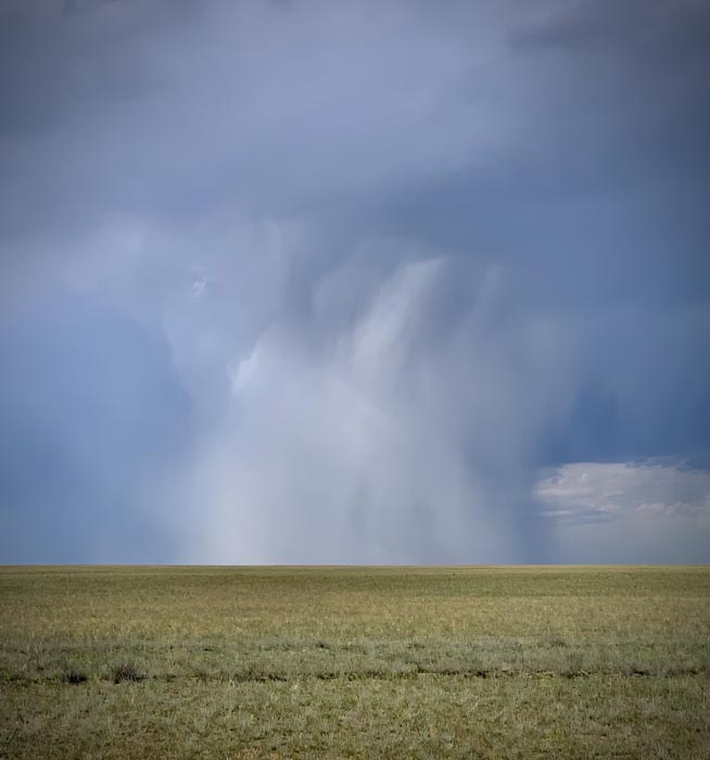 Bir ara durup arkama bakınca Alma Ata’nın üzerinde birikmiş kara bulutların giderek bana doğru yaklaştığını fark ediyorum. Yağmur bu… Böylelikle durup rüzgarın yavaşlamasını beklemek de bir seçenek olmaktan çıkıyor. Tek şansım hızımı biraz daha arttırmaya gayret edip bir an önce rüzgarın ötesine geçebilmek. Eğer ötesi varsa tabi ki…