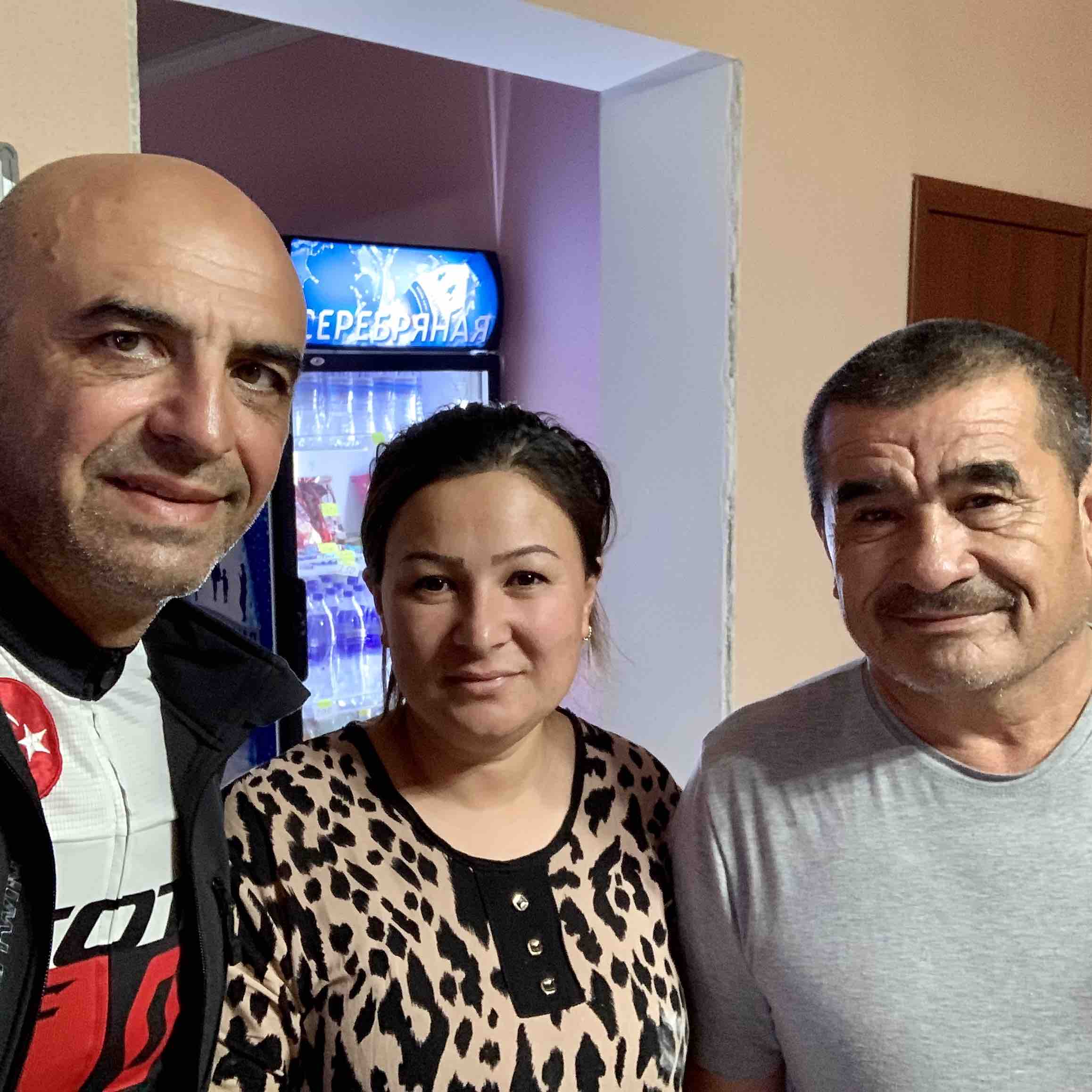 Zar zor bir on kilometre daha gidince solda küçük bir benzinci buluyorum. İçinde kimsecikler yok gibi. Camı tıklatınca yirmili yaşlarında bir çocuk küçük pencereyi açıp ne istediğimi soruyor. Adı Yerzan. Türk olduğumu görünce hoşuna gidip; “Erdogan, Erdogan” diyor yumruk yaptığı sağ elinin baş parmağını yukarı kaldırarak. Ardından dışarı çıkıyor biraz sohbet ediyoruz.