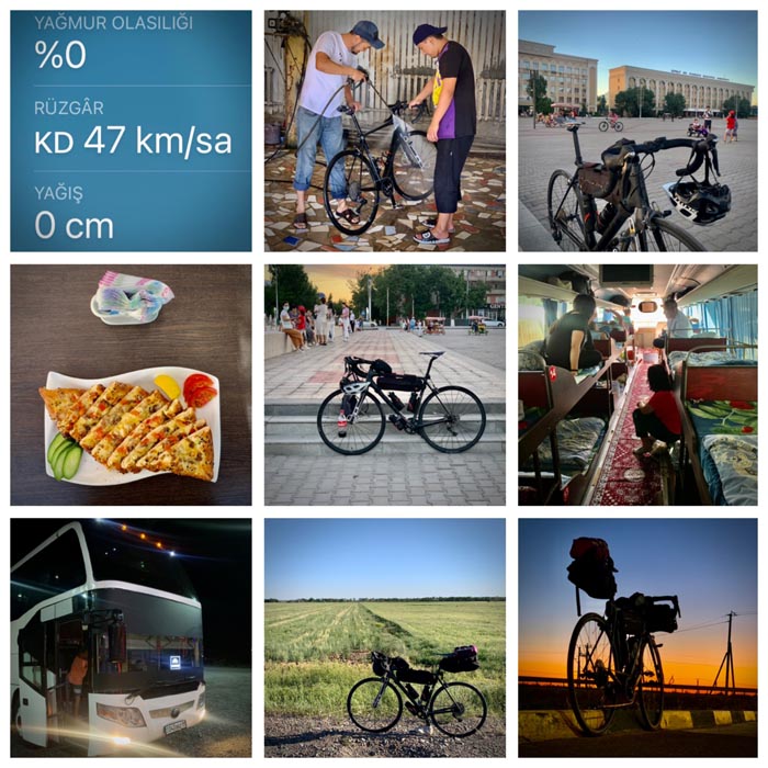 Otele dönüp Lazat’la konuştuktan sonra ertesi gün otobüsle Çimkent’e geçmeye karar veriyorum. Testimi yaptırdıktan sonra sonuç çıkana kadar orada bekleyeceğim artık. Ve bu karar sanki Thor’un çekici inip kalan son umutlarımı da paramparça ediyor: “Sanırım Kazakistan’daki bisiklet sürüşümüz şu an itibarı ile son buldu. Tam da tadını çıkarmaya başlamıştık halbuki…”