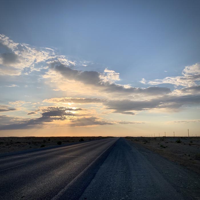 Rüzgarın daha da kuvvetlenmesiyle uçarcasına süzülmeye başlıyorum güney Kazakistan yollarında. Gerçekten muhteşem. Günlerdir yaşadığım sıkıntıların geri ödemesi yapılıyor sanki. Ağzım kulaklarımda kayarcasına yol alıyorum.