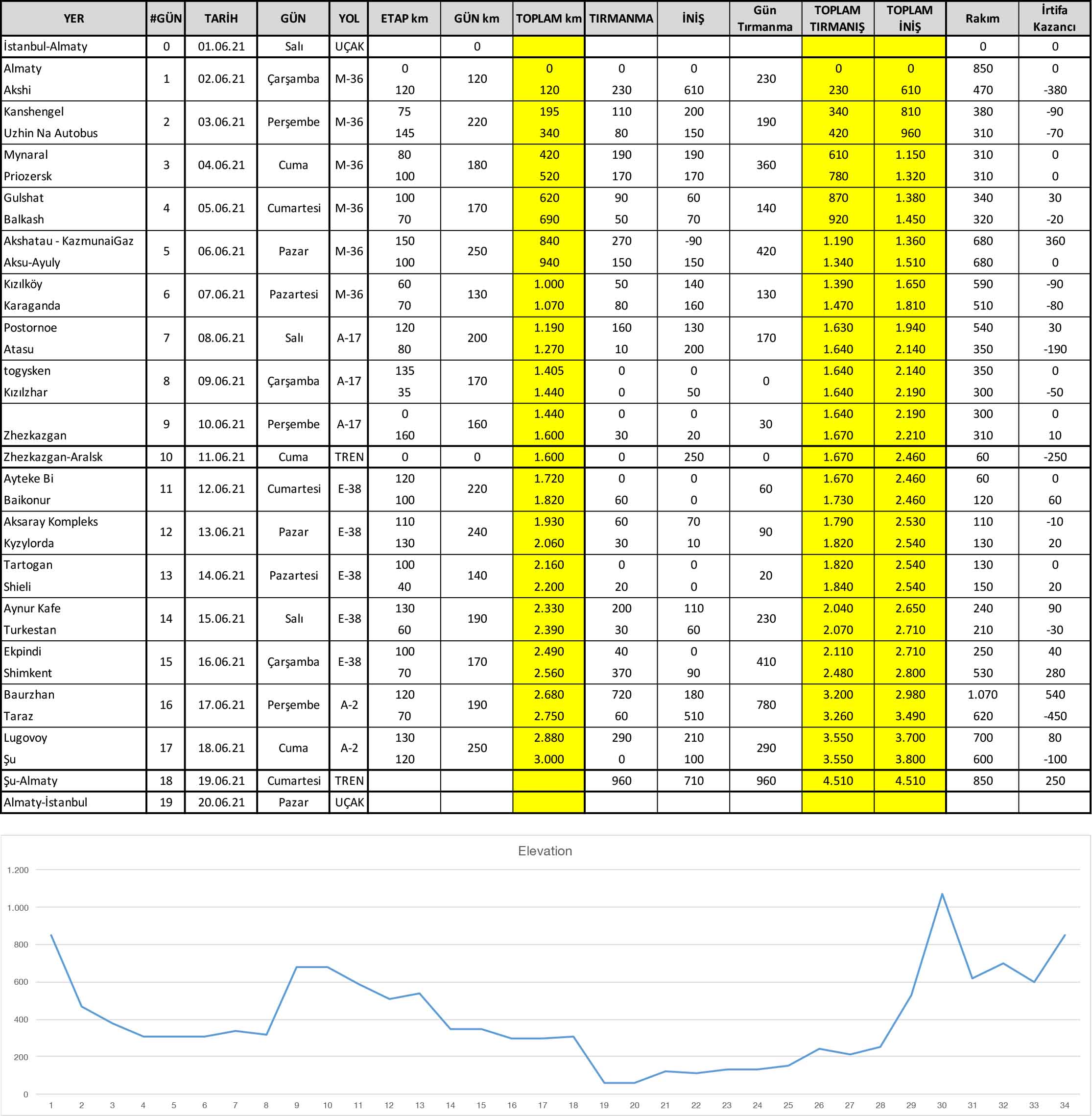 Planladığım rota ülkenin ticari başkenti Alma-Ata’dan başlıyor. Yaklaşık 1.200 km kuzeyindeki ve aslında Sibirya’nın güney sınırı da sayılan başkent Astana’dan batıya dönüp eşsiz Kazak Stepleri’nde devam edecek. Bu devasa düzlükler gerçekten sıra dışı. Dünyada sadece dört yerde varlar ve ben onlarda birinde sürüş yapabileceğim için kendimi son derece ayrıcalıklı ve heyecanlı hissediyorum. Yalnız yol Step’in ortasında bittiği için 1.000 km’lik bir tren yolculuğu yapmam gerekecek. Bu sayede Batı Kazakistan’daki Aral’a geçip sürüşe Amu Derya (Ceyhun) ile Sri Derya (Seyhun) arasında kalan ata topraklarımızda devam edeceğim. Burada yapacağım 1.500 km’lik ve toplamda yirmi gün sürecek 3.500 km’lik sürüşün ardından yolculuğu başladığım nokta olan Alma-Ata’da sonlandırmayı planlıyorum. Eğer gerçekleştirebilirsem, üç farklı coğrafyadan geçeceğim tam bir keşif gezisi olacak anlayacağınız…